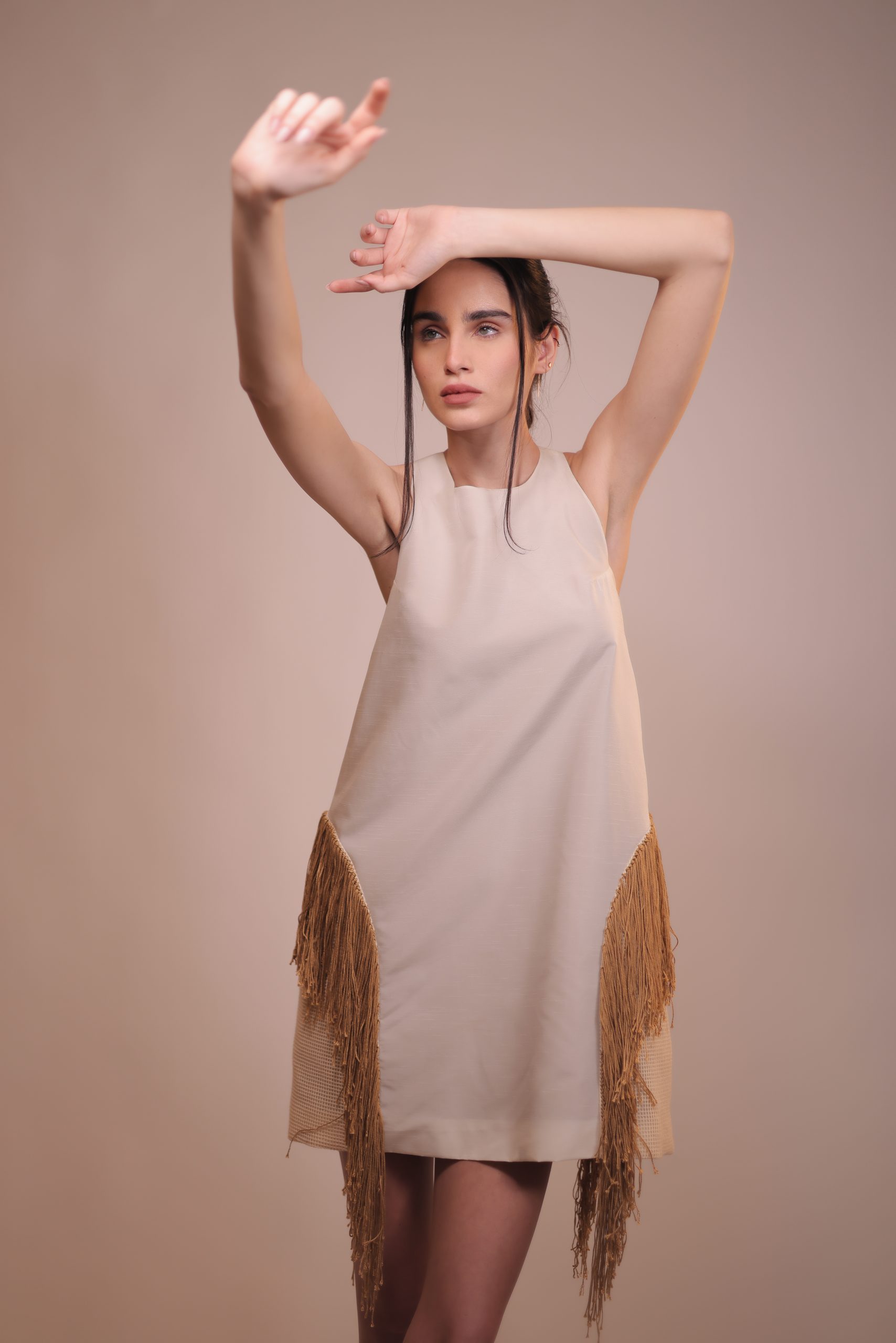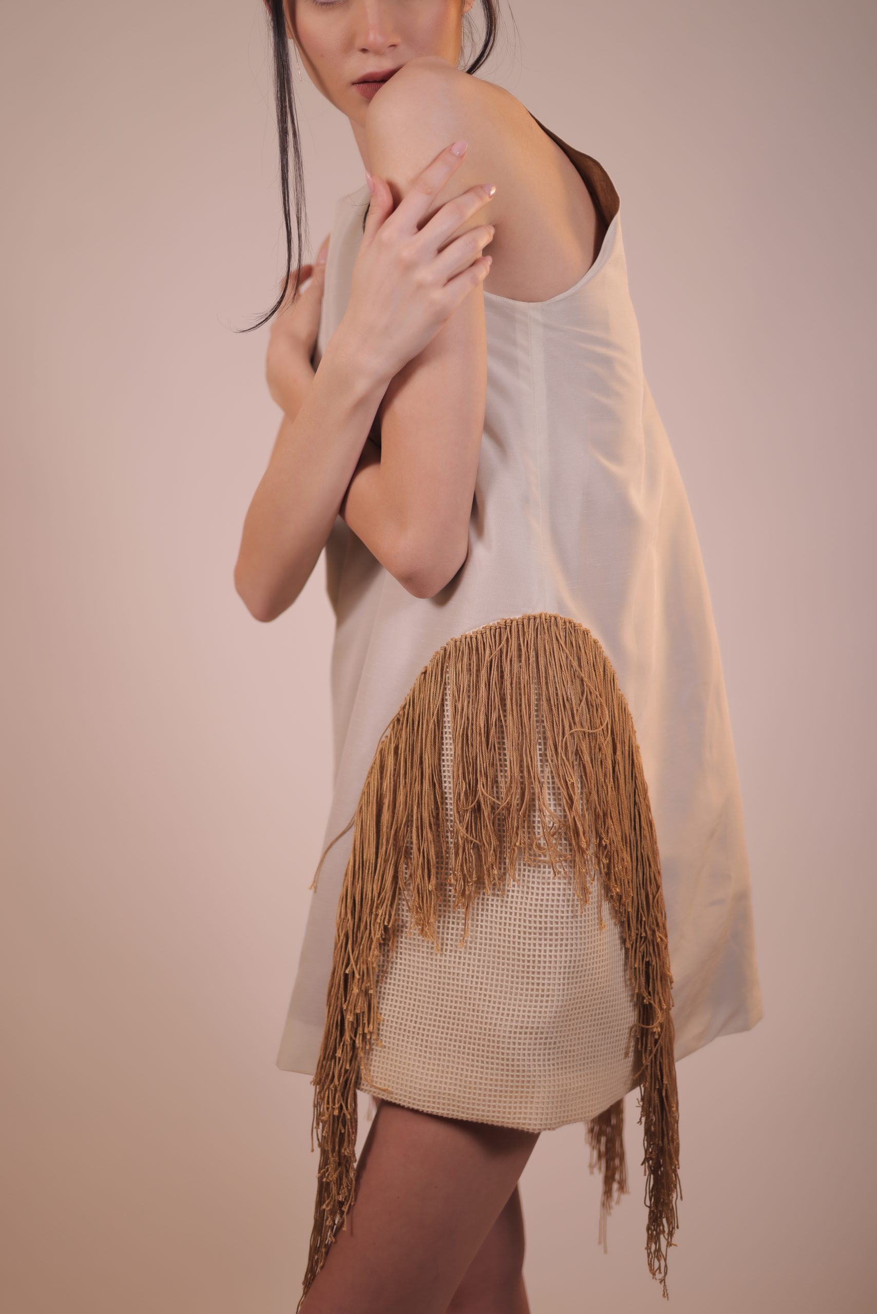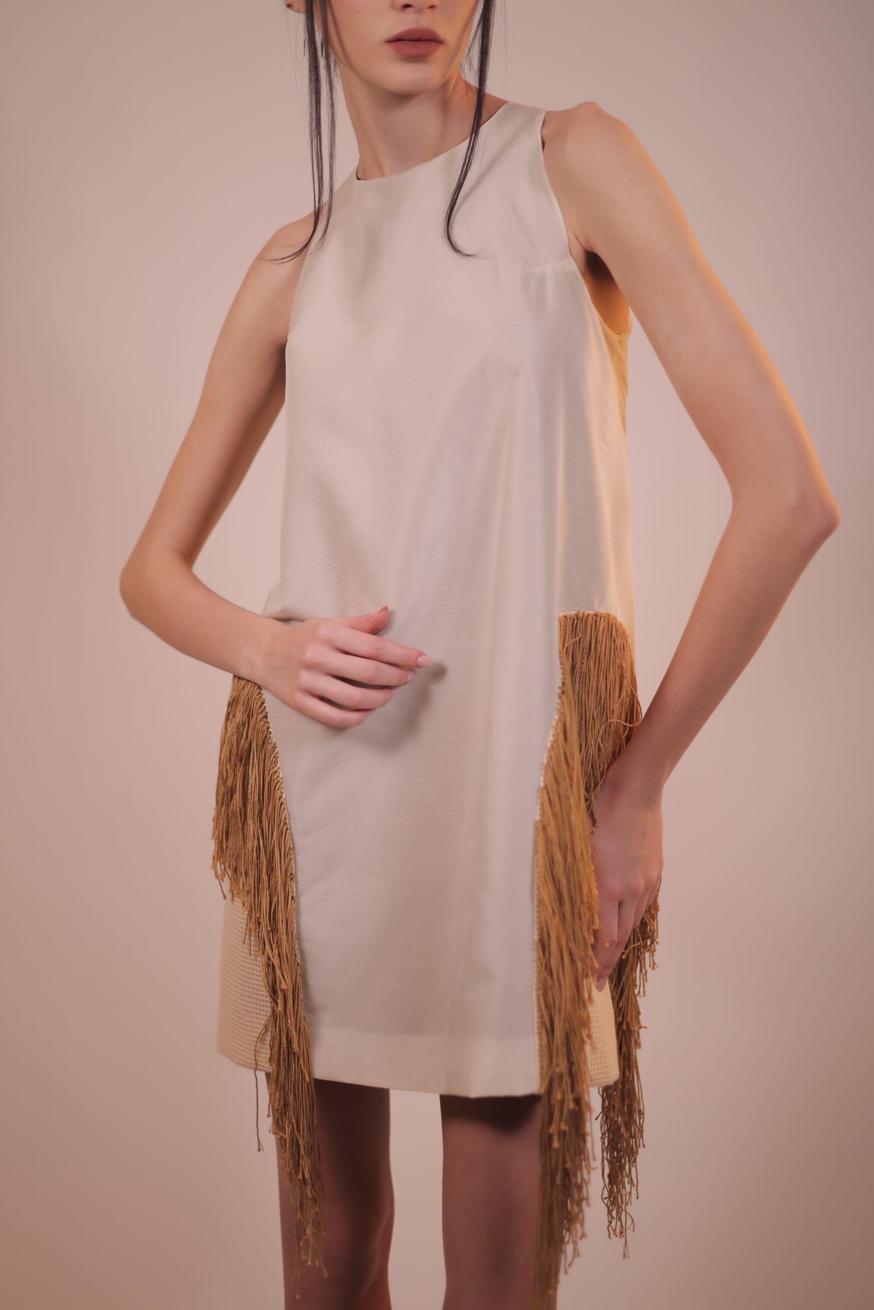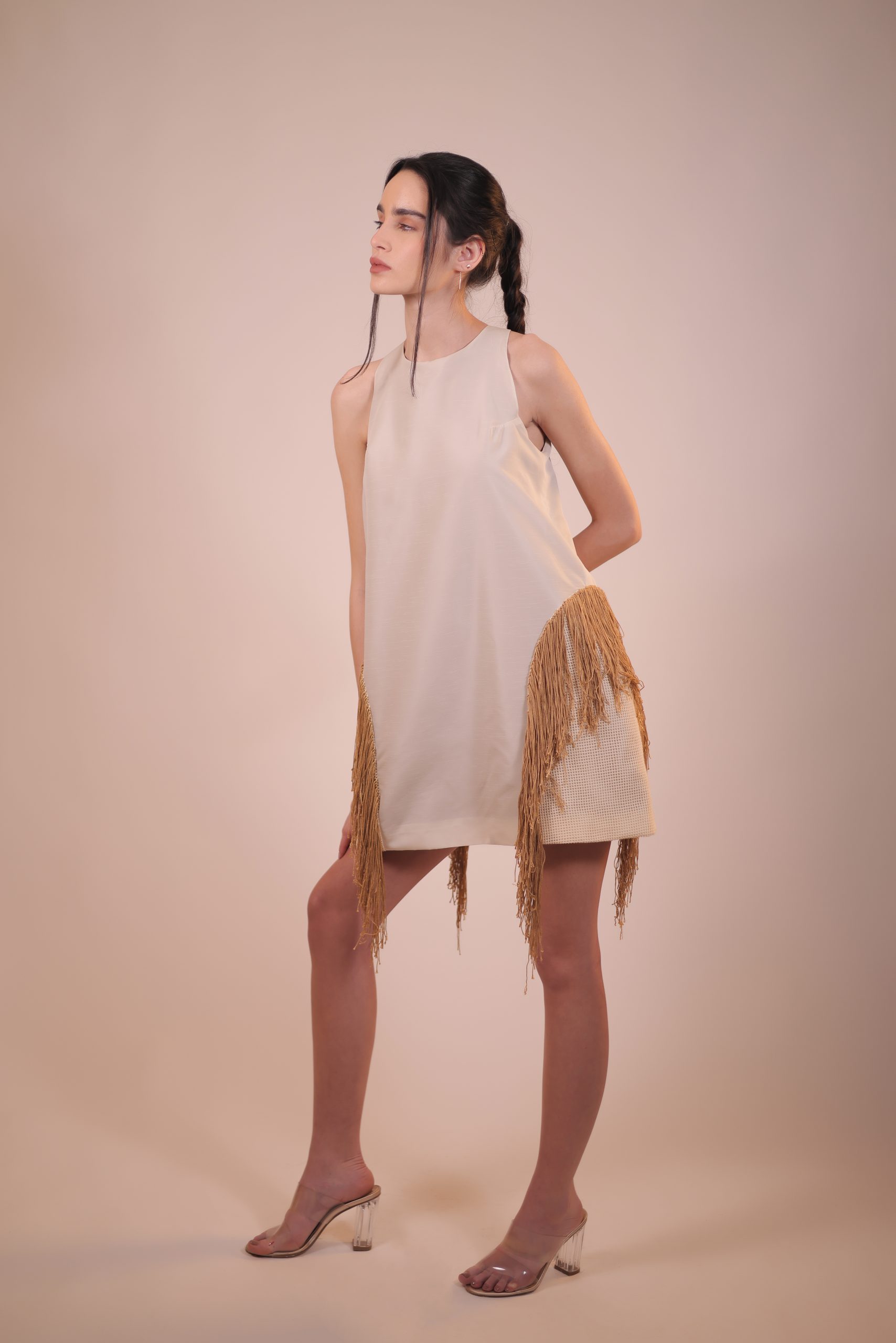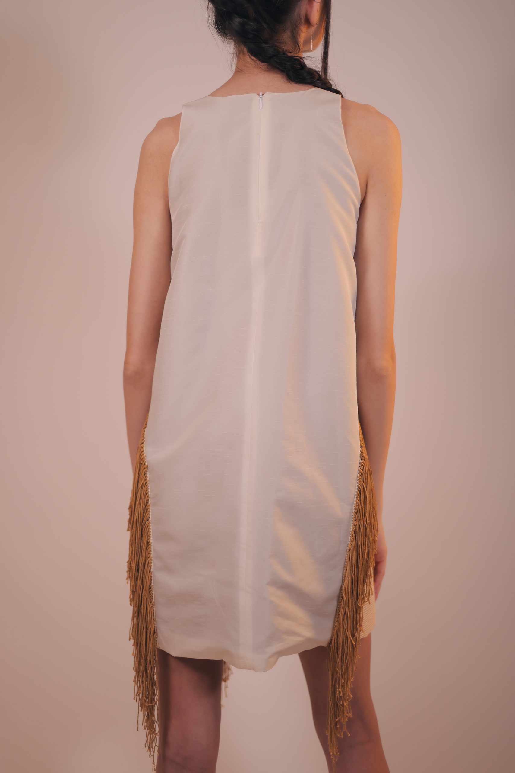 Our sleeveless dress effortlessly combines timeless elegance with a touch of bohemian flair. This dress is designed for all body types with handmade earth-toned fringes that sway every step. Whether you’re attending a garden party or a romantic dinner, this dress will turn heads.