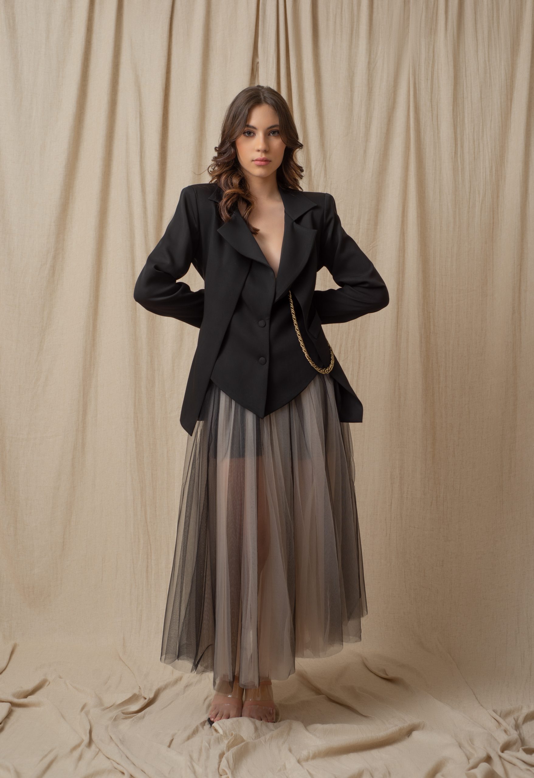 Enjoy our chic midi skirt that can be worn with or without the yoga short. Style it with the crop top, or throw on our Shelby inspired blazer for a different look.